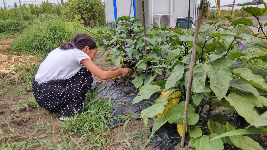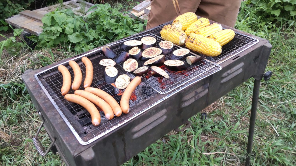 収穫したナスをそのままBBQで焼くなんて、サイコーの贅沢ですよね😆