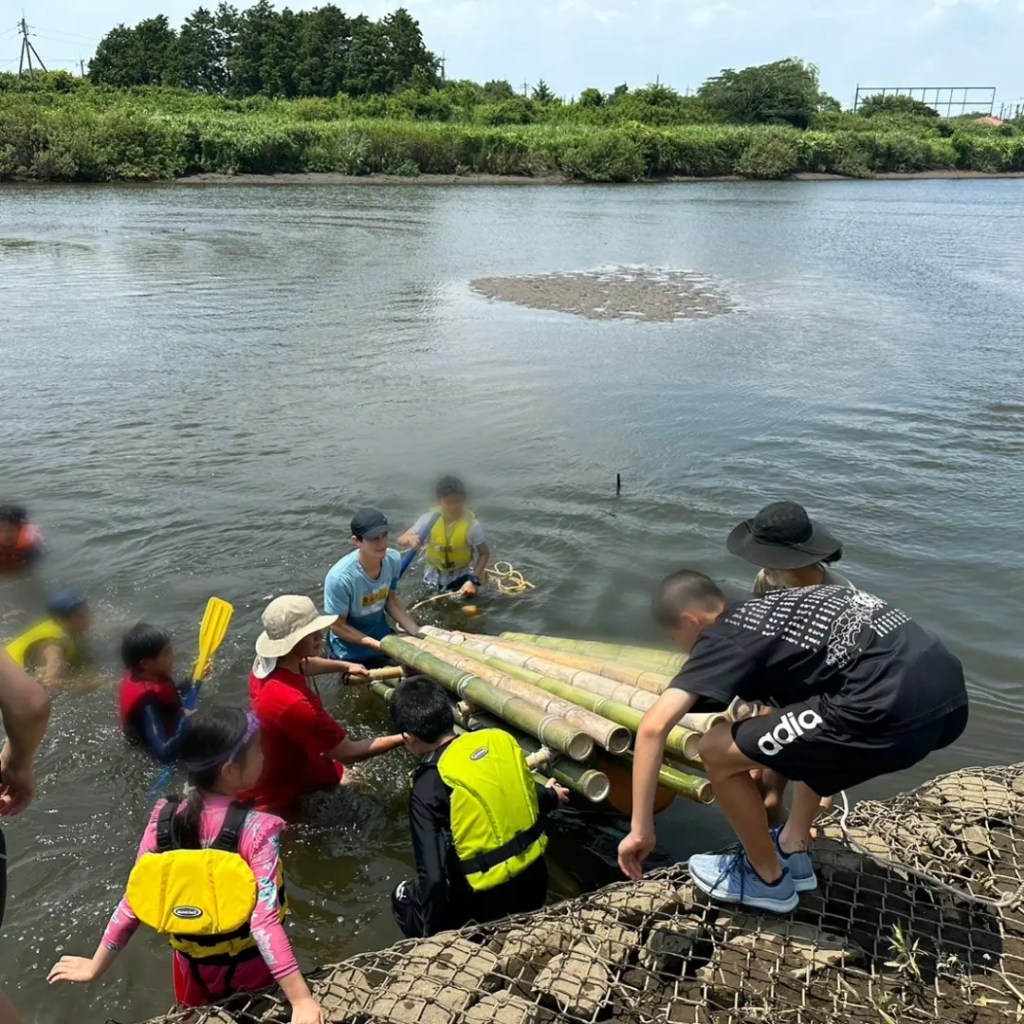 フリースクールの活動で、竹でイカダを作って、栗山川@横芝光町で乗って遊ぶというイベントを開催しました。
